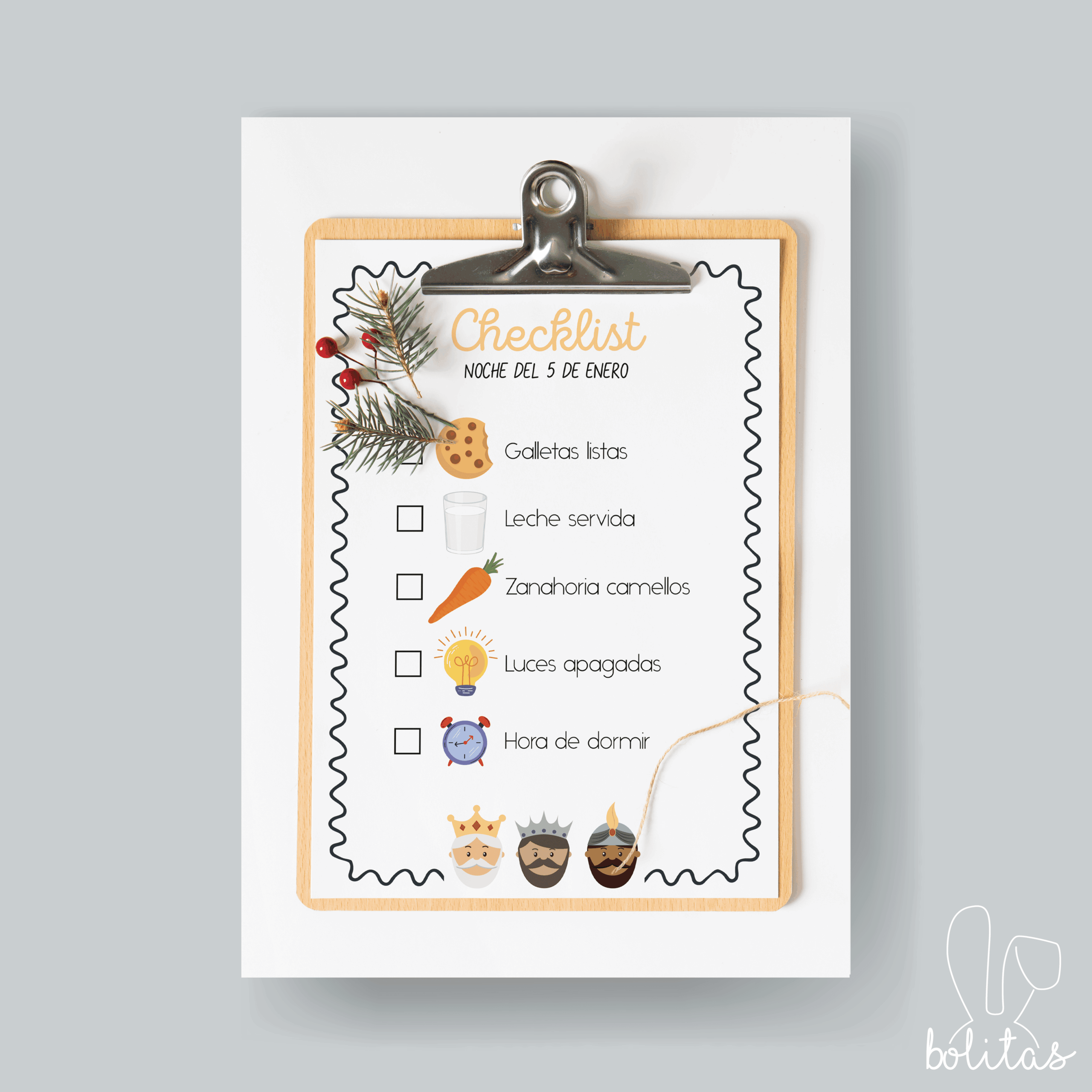 Convierte la Noche de Reyes en un momento especial con esta checklist imprimible pensada para que los más peques sigan el ritual de preparar todo para la llegada de Sus Majestades Los Reyes Magos.