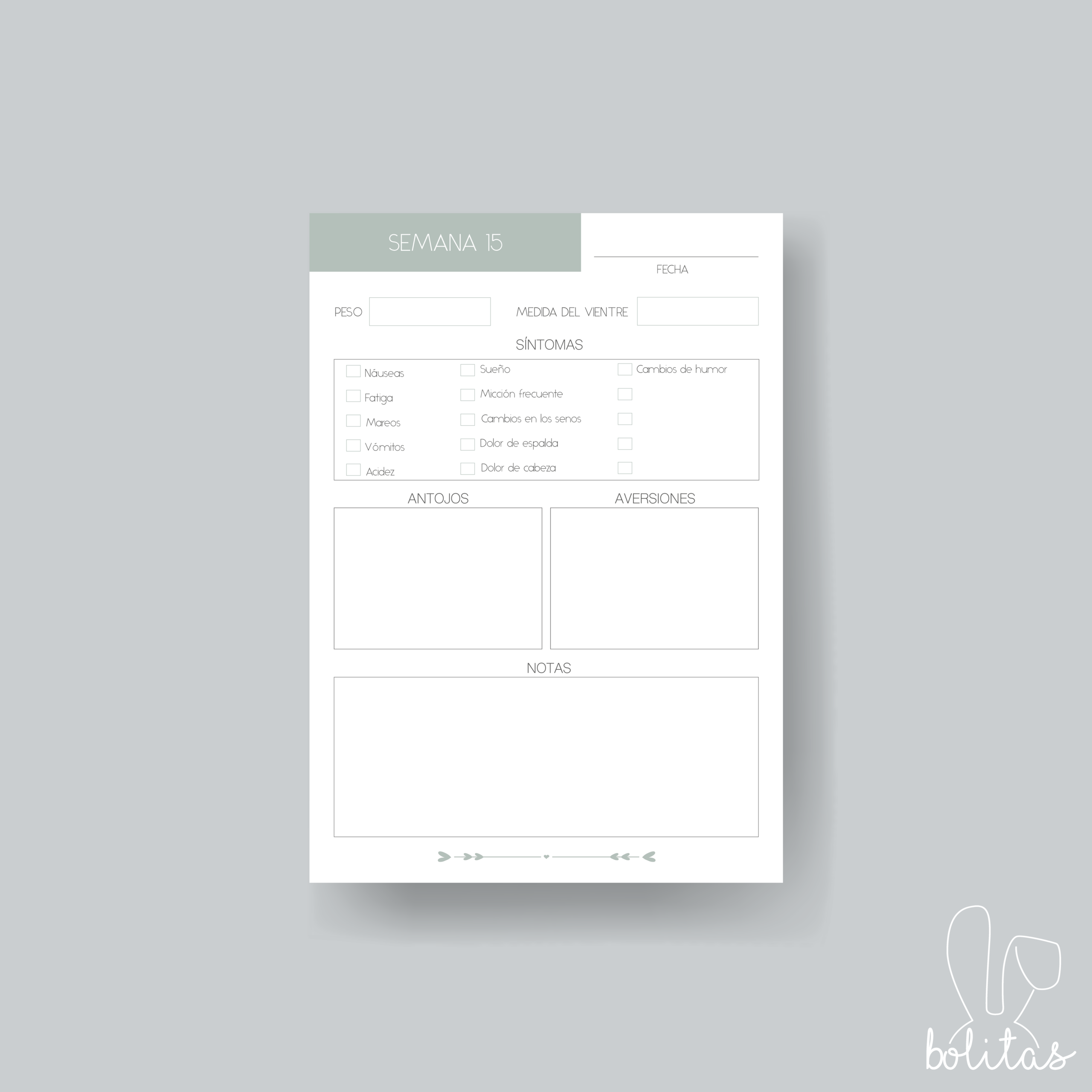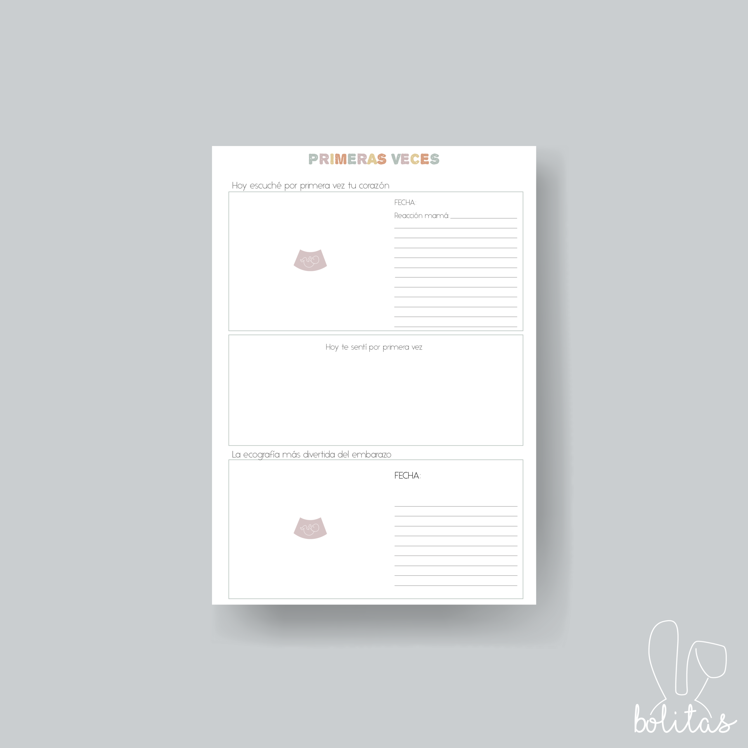 Por fin llegó el positivo más esperado. Con este diario podrás seguir y anotar todos los hitos y detalles de tu embarazo. Podrás registrar tus síntomas y antojos. Hazte una foto semanal para ver la evolución del crecimiento de la barriga y anotar cada pensamiento y detalle.