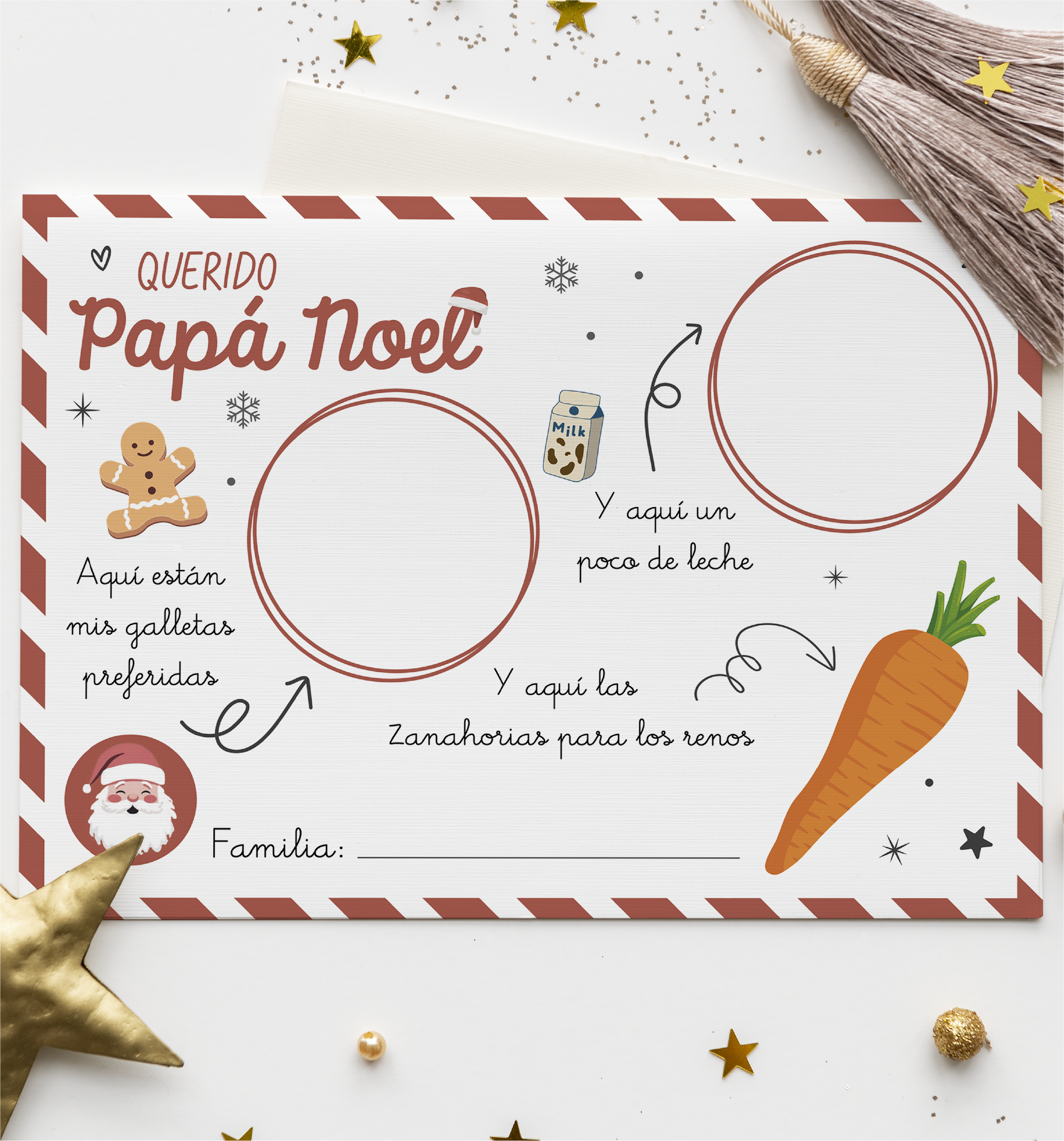 Prepárate para una noche llena de ilusión con este mantelito imprimible para  Papá Noel. Pensado para que los más peques de la casa puedan dejar sus dulces, la lecha y el agua a Papá Noel y sus renos de una forma especial, bonita y ritual.