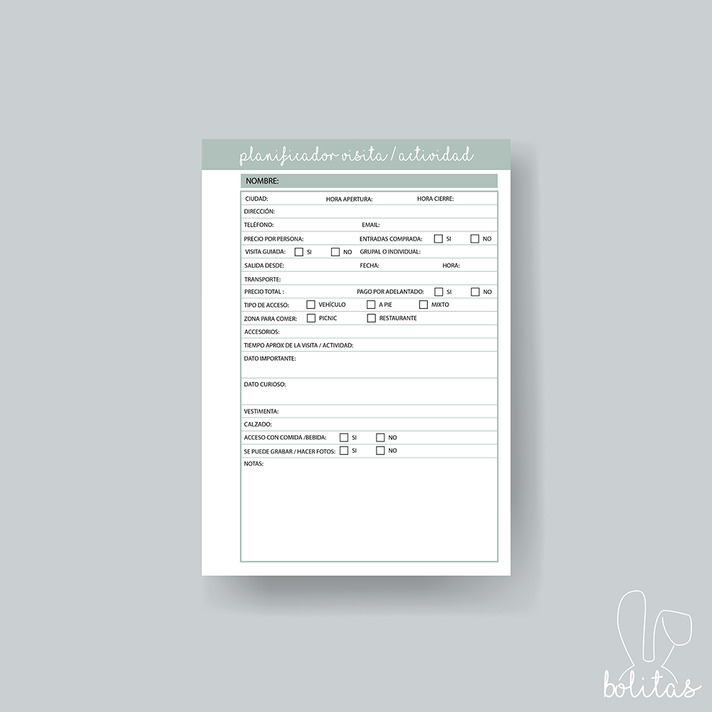 Transforma tus sueños de viaje en una realidad bien organizada. Diseñado para garantizar que cada aspecto de tu viaje este meticulosamente planificado. Ideal para todos aquellos aventureros que quieran vivir al máximo su viaje planificando cada detalle, desde los itinerarios, la información del destino hasta los gastos. Incluye más de 20 páginas.