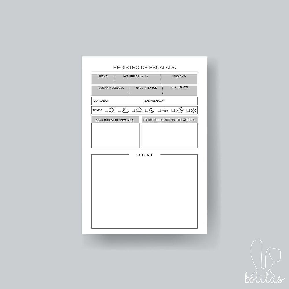 Documenta todos los detalles y experiencias de escalada: ubicación y ruta entre otros. Ideal para aquellos que busquen realizar un seguimiento de progreso, de sus logros de escalada o para inspirar a los más aventureros a conquistar sus mayores objetivos de escalada. Incluye 5 páginas.